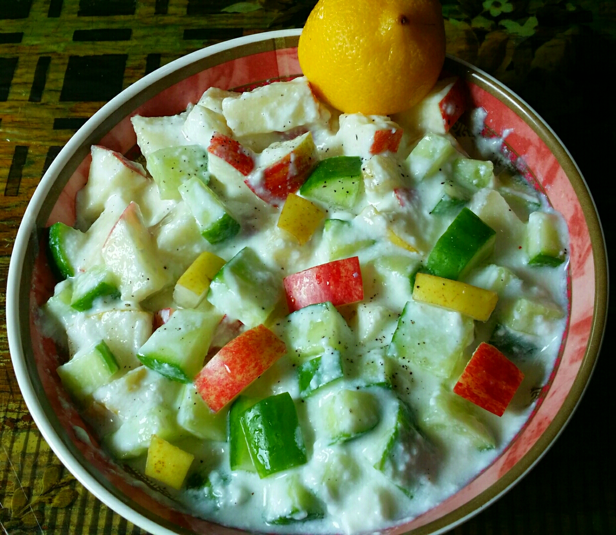 This can be called as the King of all Raitas. This is a medley of a variety of fruits immersed in a cream and yogurt sauce. A very healthy, rich and easy to prepare raita recipe that can adorn any meal with its presence. A must try recipe for all my diet conscious friends! I've used cucumber here because it helps to balance the sweetness of the raita.